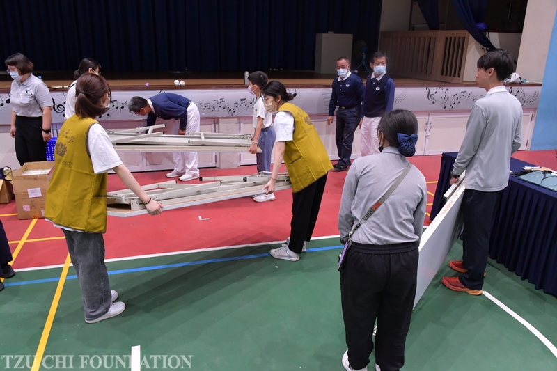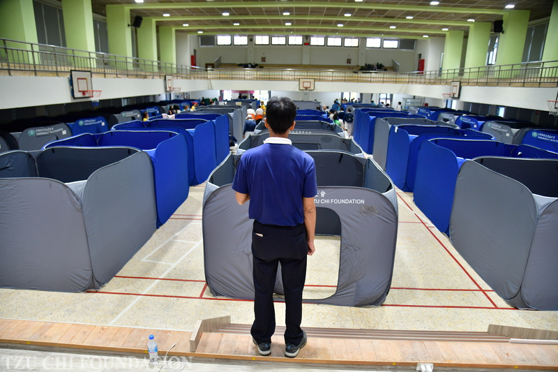 災害援助」花蓮市中華國小避難收容中心福慧隔屏搭設