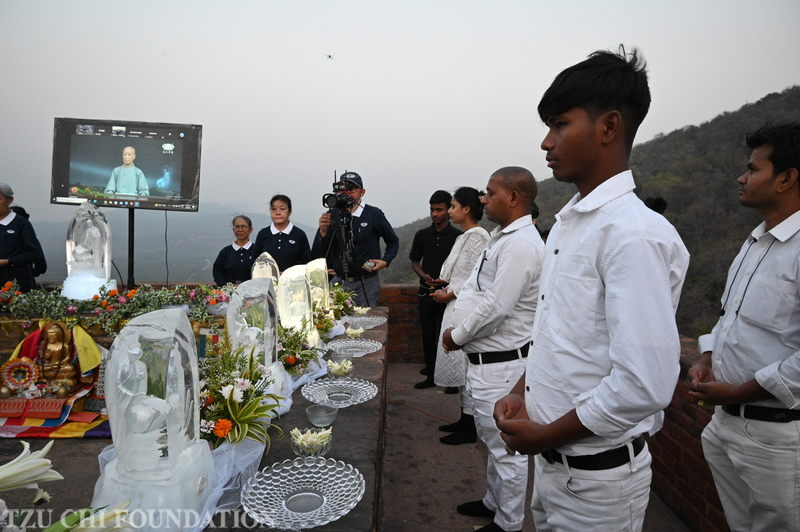 慈濟58周年,慈濟志工首次於靈鷲山舉辦浴佛典禮暨朝山活動;印度比哈爾省王舍城靈鷲山浴佛典禮